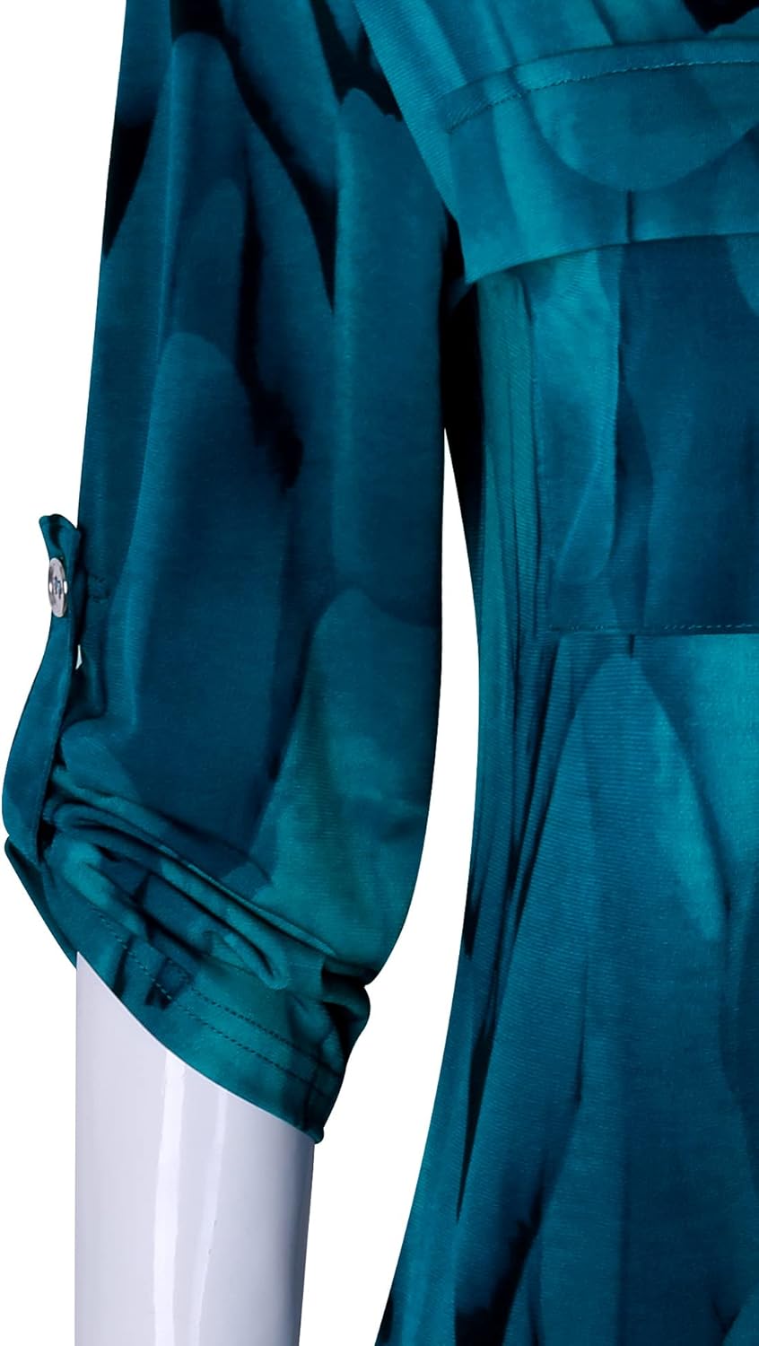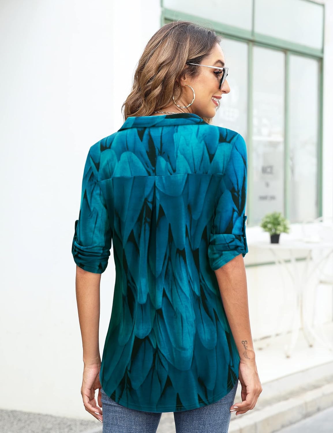 - 3/4 Sleeve Tops: This 3/4 length sleeve tops is a fantastic option for not only style, but also a great choice for versatility and comfort. It is easy to roll up and buttons closed. The dressy tops effortlessly transitions from day to evening